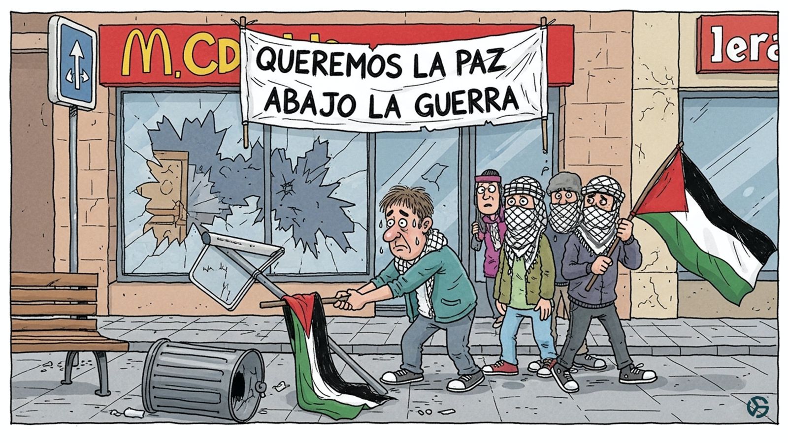 Este espectáculo no es solidaridad; es antisemitismo disfrazado de progresismo, financiado por una izquierda que olvida que Israel es el único baluarte democrático en Oriente Medio frente al fanatismo yihadista. Estas «protestas» ignoran el alto el fuego real en Gaza, optando por el caos en lugar del diálogo. ¿Debate de ideas? Claro: ¿Cuánto más vamos a tolerar que turbas quemen España en nombre de una causa que, con paz en el horizonte, solo sirve para desestabilizar? Debemos exigir mano dura contra estos agitadores, priorizando la seguridad nacional sobre caprichos ideológicos. España merece estabilidad, no hogueras callejeras.